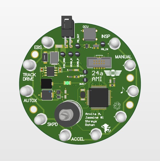 This is a custom PCB I designed in order to control our autonomous electric car's drive state.