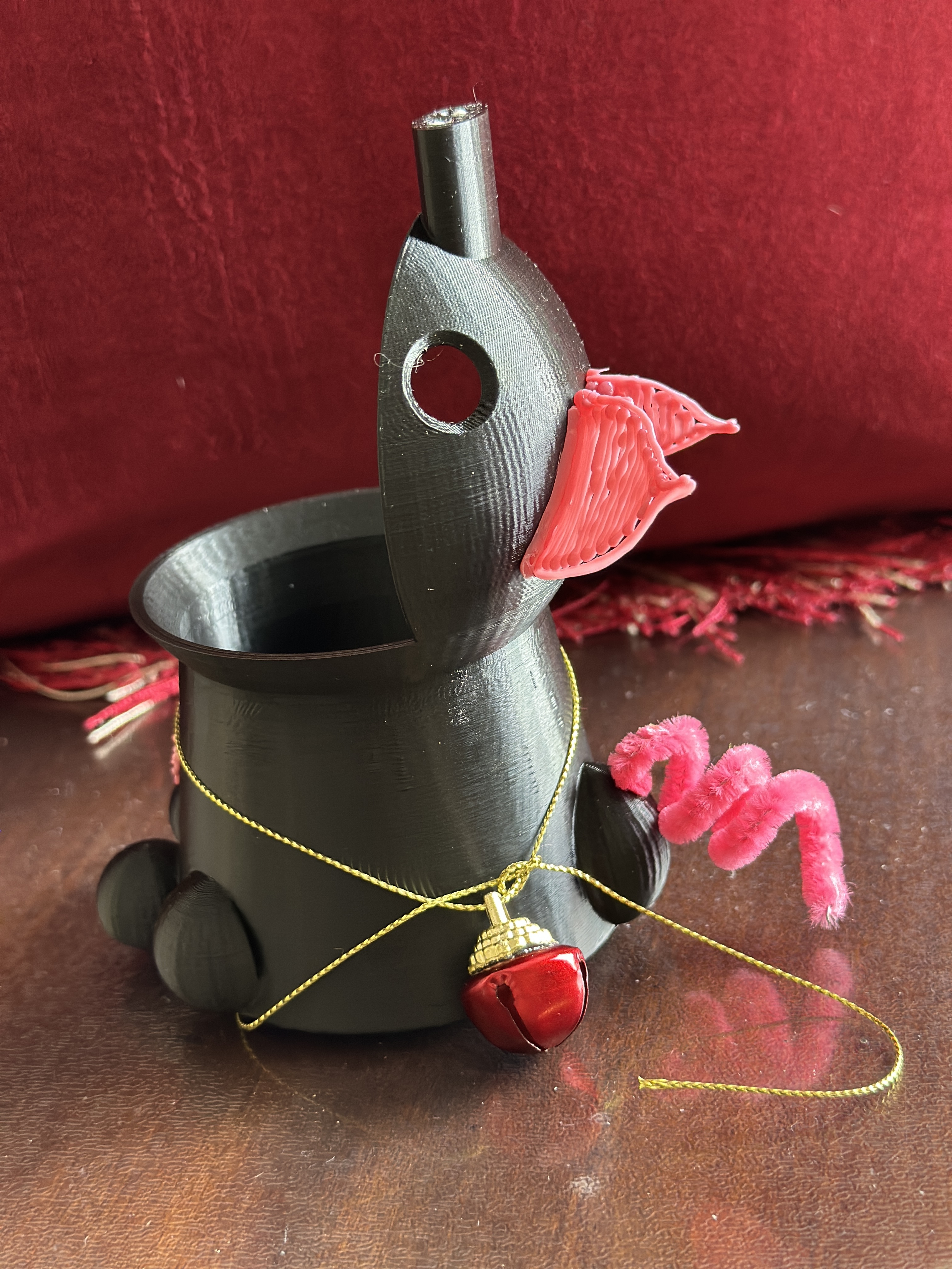 Piggy Pencil Holder: A gift for my mom! I designed a pencil holder shaped like an open-mouthed pig.